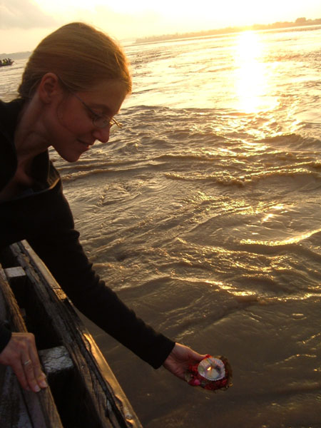 Dopo un viaggio in auto di oltre 8 ore, si giunge finalmente a Varanasi. Varanasi è apparentemente caotica e sporca come molte località indiane, fino a che, improvvisamente, ci si ritrova sulle rive del Gange. E non appena appare questo fiume immenso ci si inebria della spiritualità che questa città possiede. Le cerimonie religiose, le pire, le barche zeppe di turisti con i lumini in mano fanno parte di un’atmosfera che credo sia unica in India e probabilmente al mondo. E’ bello vedere che la spiritualità di un luogo non viene per forza profanata dal turismo, specialmente se il luogo in questione è Varanasi, la città sacra indu!
